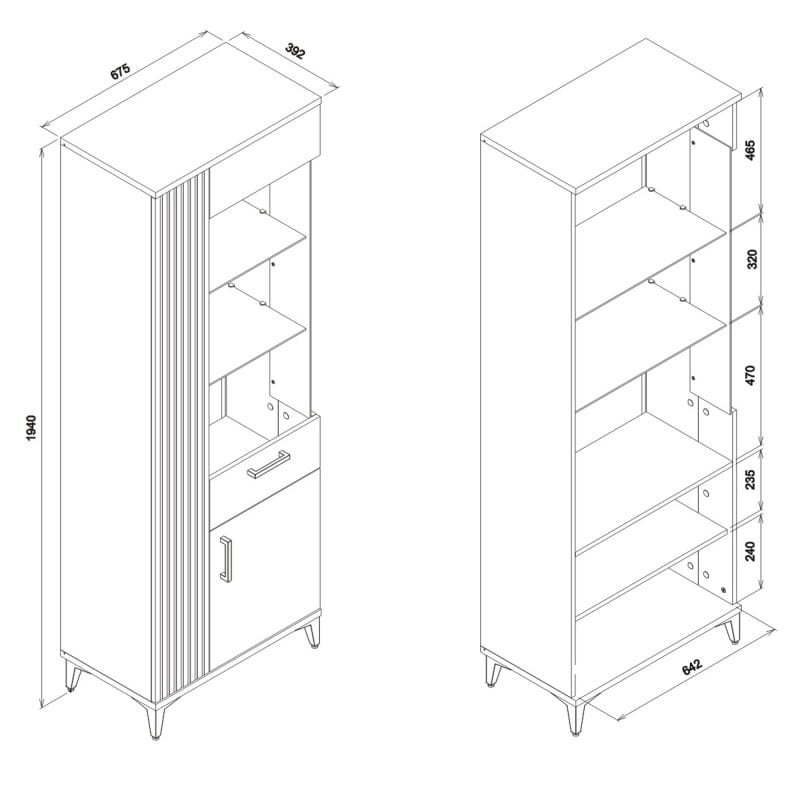 Witryna stojąca lewa ARIS AS08 świetnie dopełni niemal każde wnętrze. Konstrukcja mebla podzielona została na dwie części. W górnej posiada szklane półki, służące do ekspozycji, które mogą zostać podświetlone za pomocą LED, dostępnego w opcji. Dolna część witryny oferuje miejsce do przechowywania drobiazgów. Witryna świetnie pasuje do przestrzeni utrzymanych w nowoczesnym stylu. Swoją uwagę przykuwa dzięki modnemu połączeniu kolorystycznemu. Czarne fronty w połysku w zestawieniu z dekorem drewna wzbogacone efektem lameli nadają wnętrzu elegancji. Natomiast wysokie czarne nóżki w połączeniu z czarnymi uchwytami powodują że witryna jest dekoracją samą w sobie. Witryna lewa idealnie sprawdzi się w konfiguracji z innymi bryłami z serii ARIS lub jako pojedynczy mebel, który można dopasować do własnej aranżacji pomieszczenia.