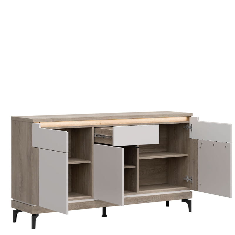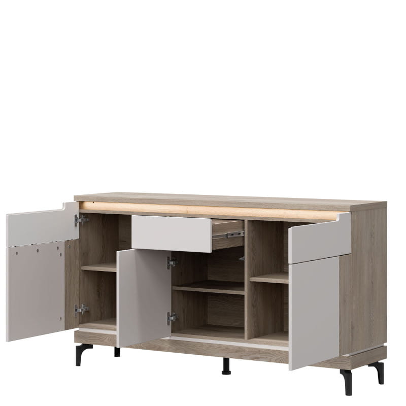 Komoda z kolekcji Aston, model AN03, to połączenie nowoczesnego designu z funkcjonalnością i elegancją. Jej wyrafinowany wygląd oraz wysoka jakość wykonania sprawiają, że doskonale wpasuje się w różnorodne wnętrza, dodając im nuty stylu i klasy. Komoda została wykonana z dbałością o każdy detal, używając wysokiej jakości materiałów, takich jak laminowana płyta wiórowa i MDF. Jej minimalistyczny, a zarazem efektowny design, charakteryzuje się prostymi, geometrycznymi kształtami i subtelnie wykończonymi detalami, co nadaje jej wyjątkowego uroku. Dostępna jest w eleganckim odcieniu kaszmir /dąb cremona, komoda z kolekcji Aston pozwala na dopasowanie jej do indywidualnych preferencji i wystroju pomieszczenia. Doskonale sprawdzi się zarówno w salonie, sypialni, jak i w holu czy gabinecie, zapewniając praktyczne miejsce do przechowywania oraz dodając wnętrzu elegancji.