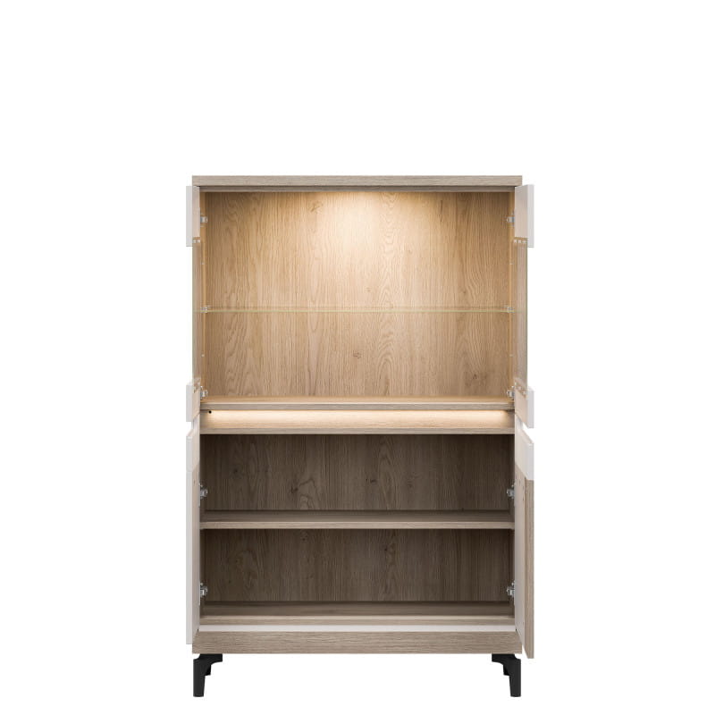 Witryna niska z kolekcji Aston, model AN04, oferuje nie tylko elegancki design i funkcjonalność, ale również szereg dodatkowych opcji i cech, które sprawią, że stanie się centralnym punktem Twojego wnętrza. Dodatkowe podświetlenie LED witryny dodaje jej wyjątkowego uroku i ekskluzywnego wyglądu, tworząc przyjemną atmosferę w pomieszczeniu. Korzystając z wysokiej jakości płyty laminowanej, witryna niska z kolekcji Aston zapewnia nie tylko trwałość i odporność na uszkodzenia, ale także estetyczny wygląd, który zachowa się przez wiele lat. Szkło hartowane zastosowane w szybach frontowych witryny gwarantuje nie tylko bezpieczeństwo użytkowania, ale także doskonałą przejrzystość i elegancję, podkreślając zawartość witryny.