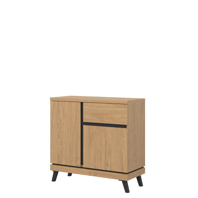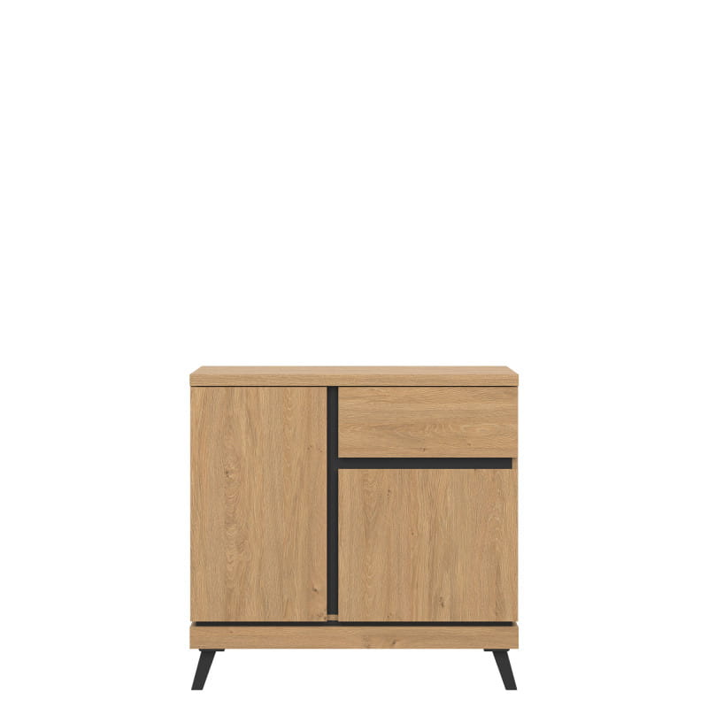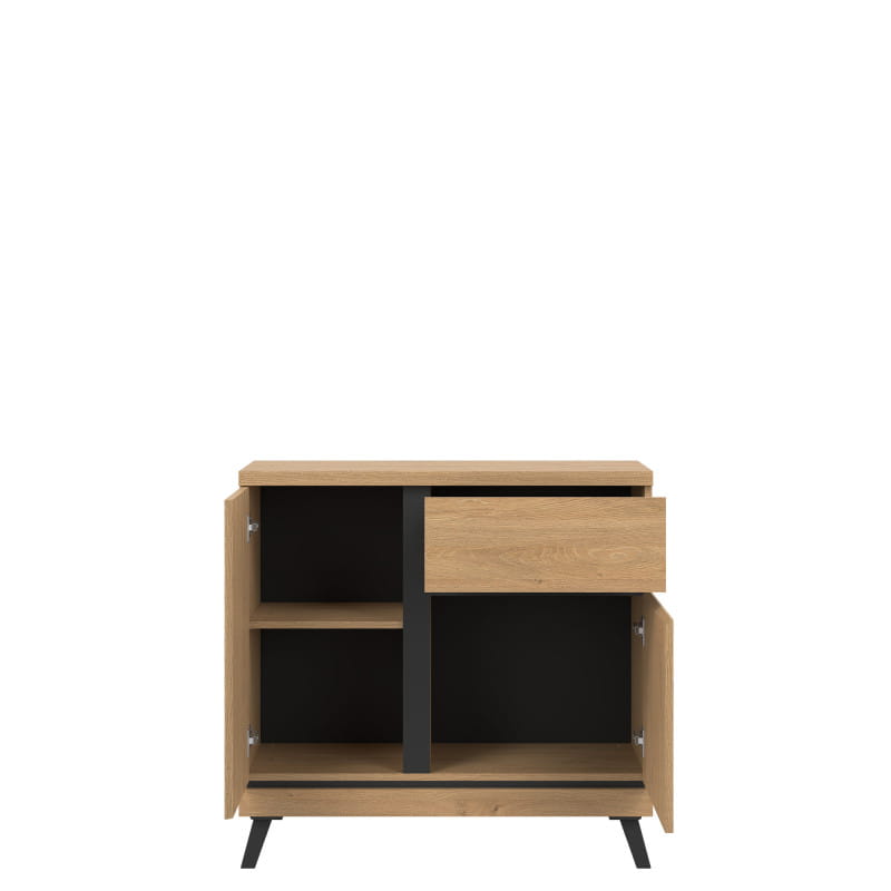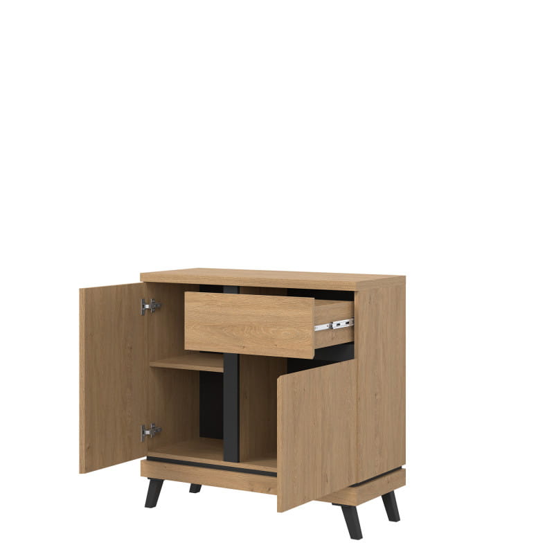 Szafka RTV ATE AT01 to eleganckie rozwiązanie dla każdego pokoju dziennego dwudrzwiowa bryła posiada szufladę i wnękę. Spora powierzchnia użytkowa blatu pozwala na postawienie telewizora lub wyeksponowanie dekoracji. Kolekcja ATE utrzymana jest w modnym kolorze dąb kamienny, który w połączeniu z czarnymi wstawkami zapewnia kontrastowe połączenie, które przyciąga uwagę i nadaje pomieszczeniu elegancji. Szafka RTV idealnie sprawdzi się w konfiguracji z innymi bryłami z serii ATE lub jako pojedynczy mebel, który można dopasować do własnej aranżacji pomieszczenia.