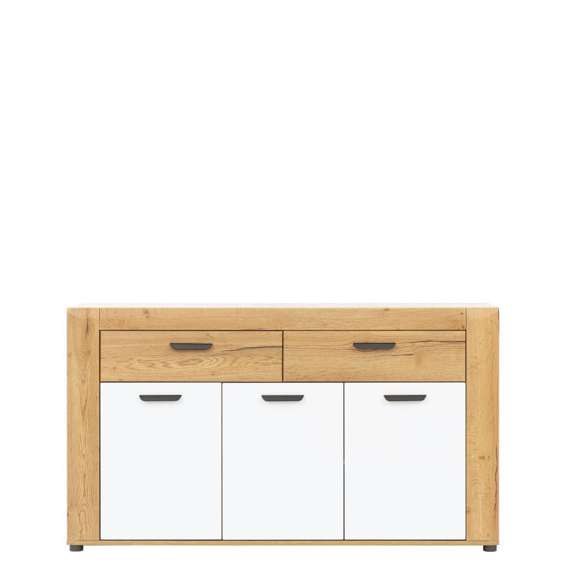 Komoda BESTO BT03 to bardzo funkcjonalny i ponadczasowy element idealny do wielu aranżacji. Komoda posiada dwie szuflady oraz dwie szafki z półkami tworząc niezwykle pojemny i stylowy mebel. Na jej szerokim blacie można wyeksponować dekoracje i bibeloty. Jasne drewno, białe fronty i proste grafitowe uchwyty idealnie pasują do wnętrz jasnych, wzbogaconych drewnianymi elementami dekoracyjnymi. Komoda idealnie sprawdzi się w kompozycji z innymi bryłami z serii BESTO lub jako pojedynczy mebel, który można dopasować do własnej aranżacji pomieszczenia.