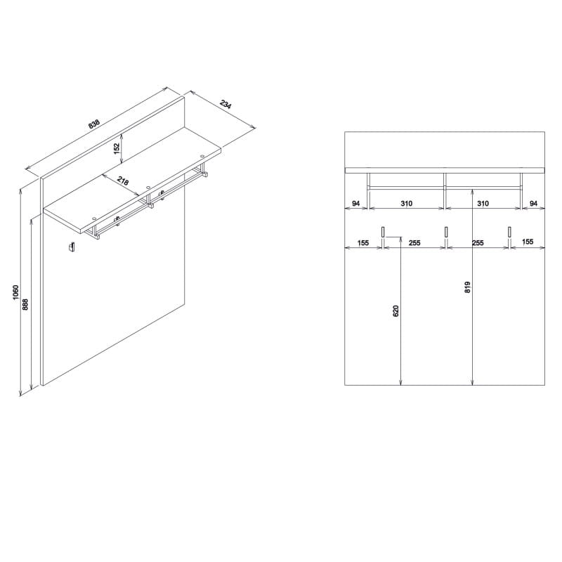 Wieszak COLIN CN11 charakteryzuje się prostą minimalistyczną formą, która sprawia, że mebel pasuje do nowoczesnego wnętrza. To część kolekcji, która pozwala nawet na niewielkiej przestrzeni rozmieścić odzież wierzchnią i akcesoria całej rodziny tak, aby wszystko, co potrzebne przed wyjściem z domu było pod ręką. Wieszak do przedpokoju jest przeznaczony do przymocowania na ścianie. Można go skompletować z szafką z naszej kolekcji CN10, by w pełni zaoszczędzić miejsce w przedpokoju.