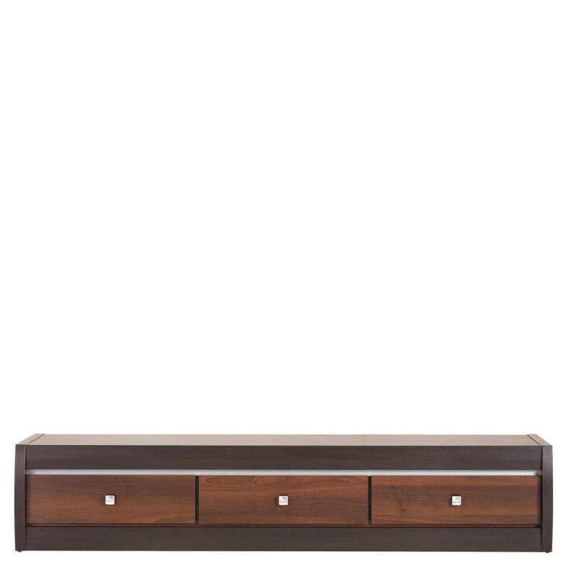 Szafka RTV FORREST FR01 to elegancka bryła, która doskonale sprawdzi się jako pojedynczy element pokoju dziennego, lub jako zestaw z nadstawką FR03, półką FR15 i witryną wiszącą FR17. Szafka wyposażona jest w trzy wysuwane szuflady o pojemnym wnętrzu, oraz przestronny blat, na którym zmieści się telewizor. Szafkę wyróżniają nietypowe zaokrąglone brzegi, delikatne wstawki w kolorze aluminium, oraz eleganckie srebrne uchwyty z wygrawerowanym kwiatowym wzorem dodaje jej subtelności i elegancji. Efektowna masywna rama nada jej niepowtarzalnego wyglądu, a ciepła kolorystyka mebla podkreśli przytulność pomieszczenia. Szafka RTV idealnie sprawdzi się w kompozycji z innymi bryłami z serii FORREST lub jako pojedynczy mebel, który można dopasować do własnej aranżacji pomieszczenia.