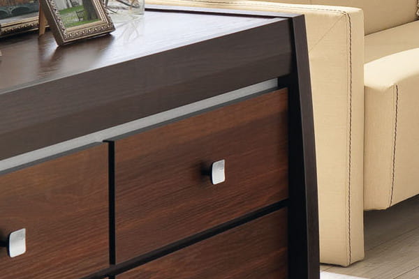 Cechy mebla Szafka RTV FORREST FR02 to elegancka bryła, która doskonale sprawdzi się jako pojedynczy element pokoju dziennego, lub jako zestaw z szafką FR04, półką FR14 oraz szafką wiszącą FR16. Zgrabna konstrukcja składa się z trzech wysuwanych szuflad o pojemnym wnętrzu oraz dwóch wnęk, w których bez przeszkód umieścić sprzęt elektroniczny i pozostałe akcesoria. Można ją również wykorzystać jako mebel ekspozycyjny. Szafkę wyróżniają nietypowe zaokrąglone brzegi, delikatne wstawki w kolorze aluminium, oraz eleganckie srebrne uchwyty z wygrawerowanym kwiatowym wzorem dodaje jej subtelności i elegancji. Efektowna masywna rama nada jej niepowtarzalnego wyglądu, a ciepła kolorystyka mebla podkreśli przytulność pomieszczenia. Szafka RTV idealnie sprawdzi się w kompozycji z innymi bryłami z serii FORREST lub jako pojedynczy mebel, który można dopasować do własnej aranżacji pomieszczenia.