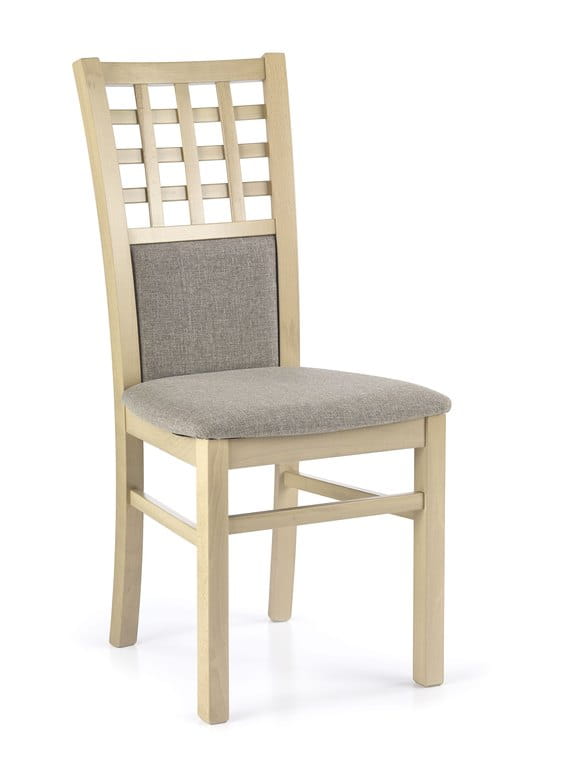 Krzesło GERARD 3 to drewniane krzesło stworzone z drewna litego bukowego w kolorze dąb sonoma, posiada tapicerkę z tkaniny w beżowym odcieniu, zapewniając nam komfort użytkowania.