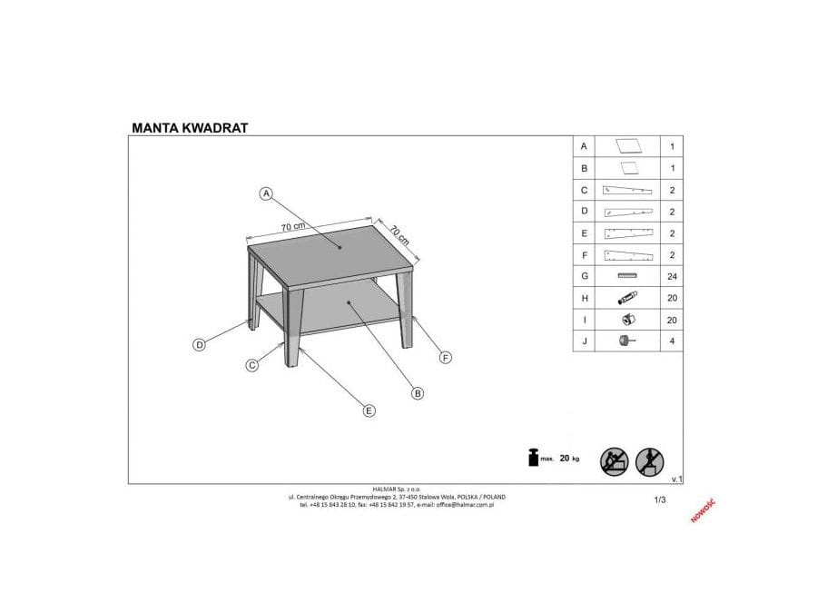 Ława MANTA KWADRAT 70x70 ciemny orzech