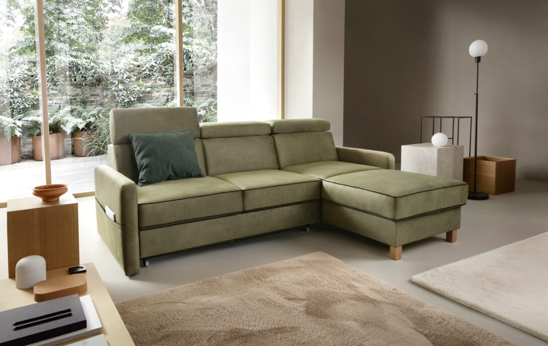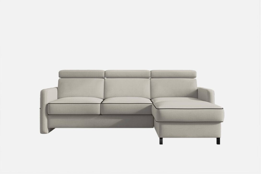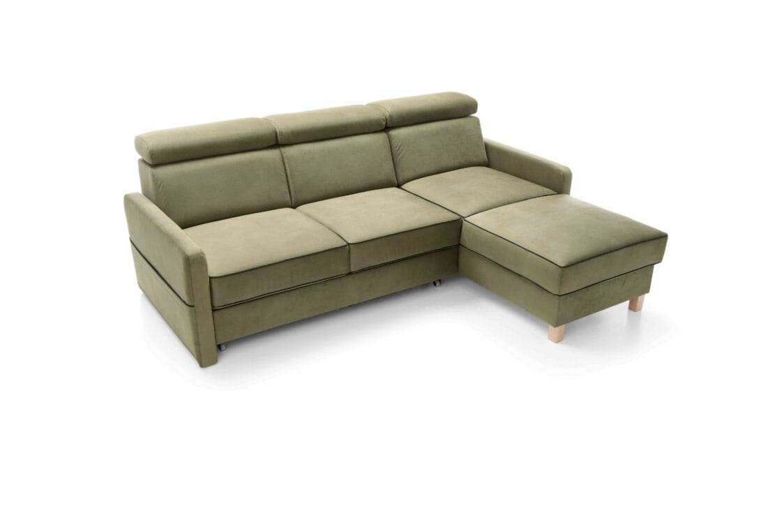 Narożnik Lima to niezwykle zgrabne rozwiązanie, doskonale pasujące do każdego salonu, niezależnie od jego metrażu. Ten niewielki model jest idealny nawet do trudno ustawnych wnętrz. Charakterystyczne cechy obejmują kieszonki na zewnętrznej stronie podłokietników, czarną lamówkę i kompaktowe gabaryty. W siedzisku zastosowano połączenie sprężyn falistych z pianką o zwiększonej gęstości, zapewniając wysoki komfort siedzenia. Stałe oparcie wypełnione pianką wysokoelastyczną oraz regulowane zagłówki doskonale wspierają plecy i kark. Narożnik został wyposażony w funkcję wypoczynku, łatwą do otwarcia za pomocą automatu typu "delfin". Cała powierzchnia spania charakteryzuje się zbliżoną sprężystością, a dodatkowym atutem jest pojemnik na pościel w otomanie. Model ten jest uniwersalny, umożliwiając tworzenie układu prawo- lub lewostronnego według potrzeb.