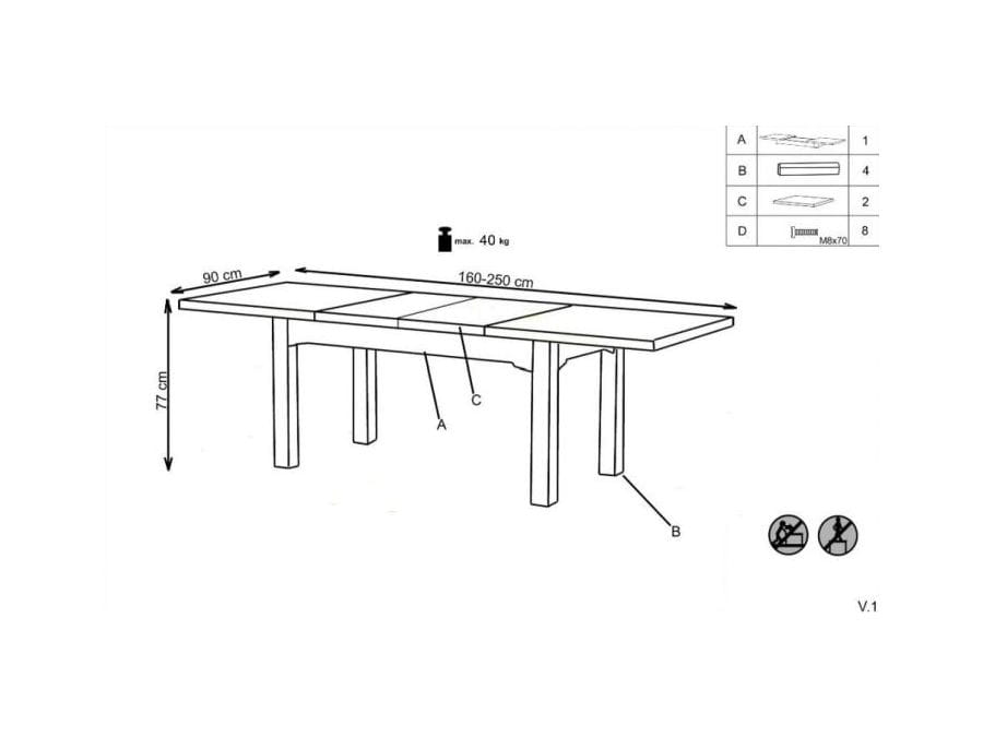 wymiary: 160÷250/90/77 cm