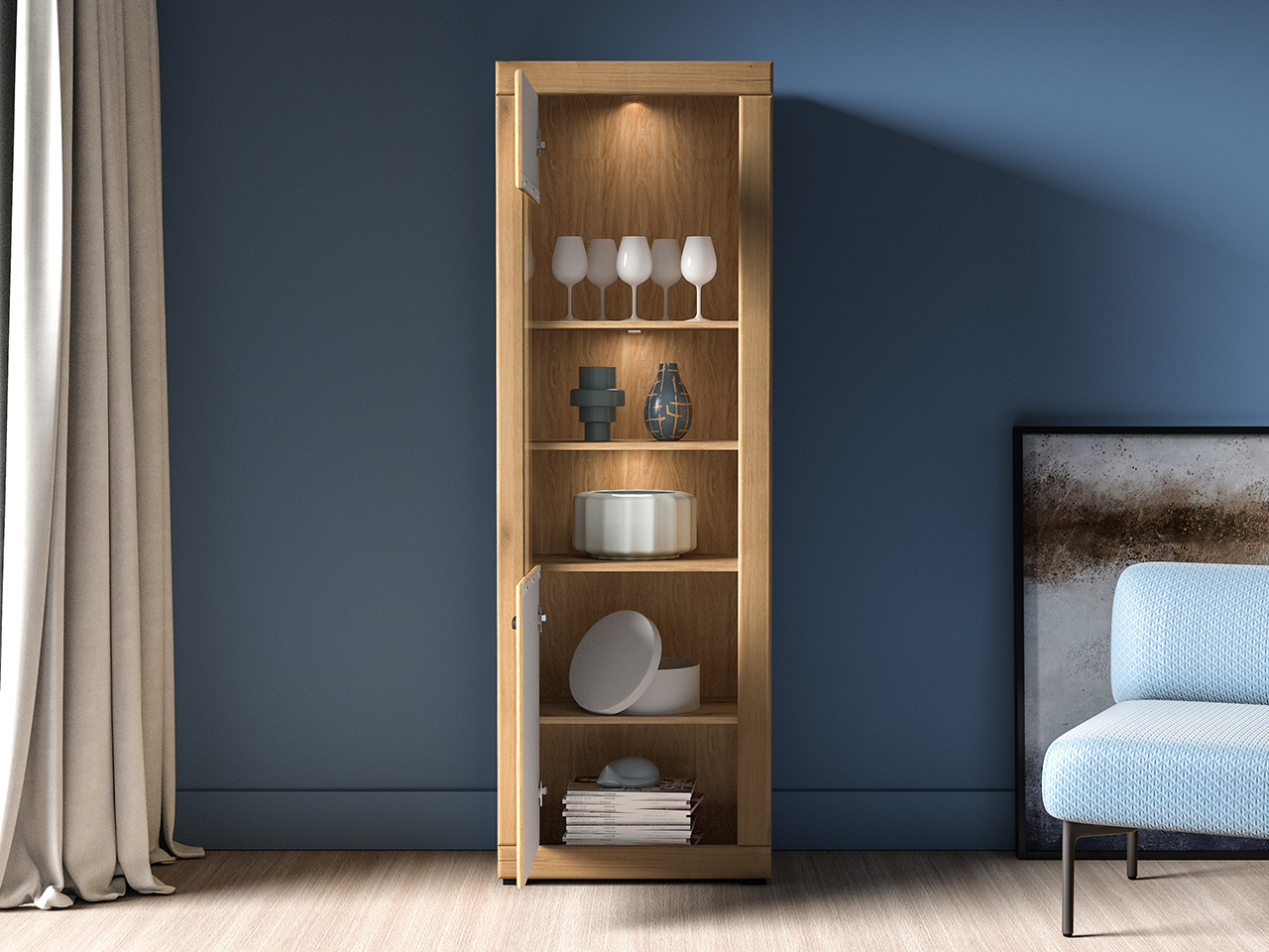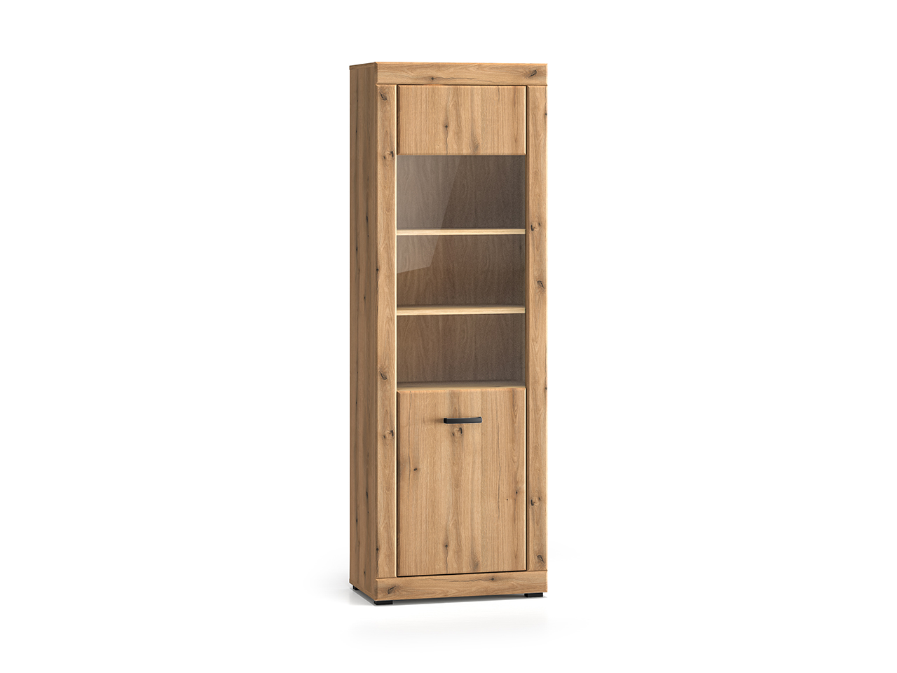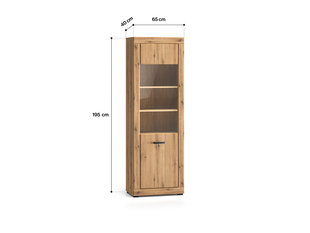 Witryna Dora 02 to mebel, dzięki któremu przechowasz i wyeksponujesz swoje ulubione przedmioty. Mebel podzielony jest na dwie części. Dolna to miejsce niedostępne dla oczu Twoich gości. Schowasz w nim obrusy czy ręczniki. Górna część to przestrzeń podzielona dwiema półkami tworzącymi trzy wnęki. Dzięki przeszklonym drzwiczkom wyeksponujesz ulubione przedmioty - porcelanowe filiżanki czy piękną, stylową zastawę. Wybierz witrynę Dora i zachowaj porządek w swoim wnętrzu.
